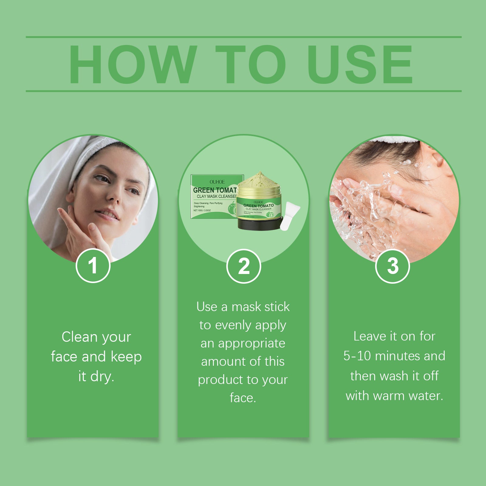 OUHOE Green Tomato Clean Clay Film Hydrating, Firming, Cleansing And Purifying Pores Facial Skin Smear Clay Film